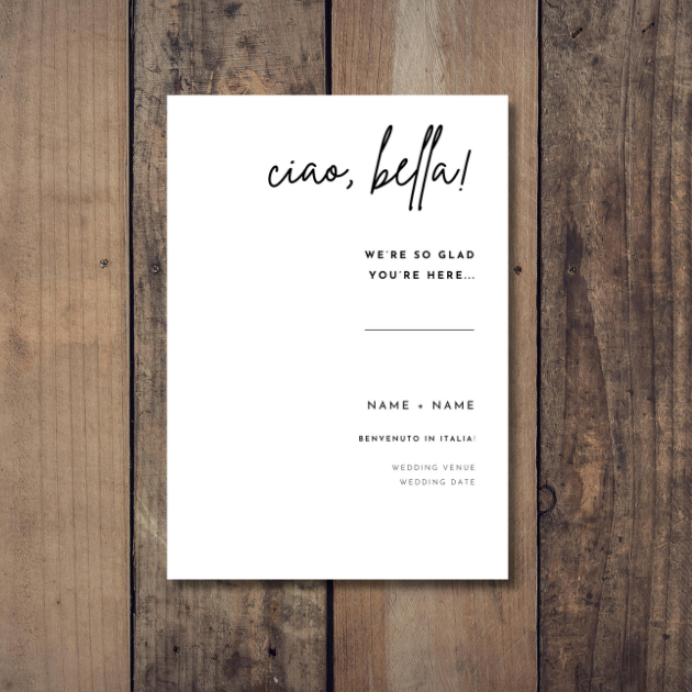 A fully editable Canva template for a Wedding Welcome Sign – with little nods to la dolce vita that are tailored to an Italian wedding.